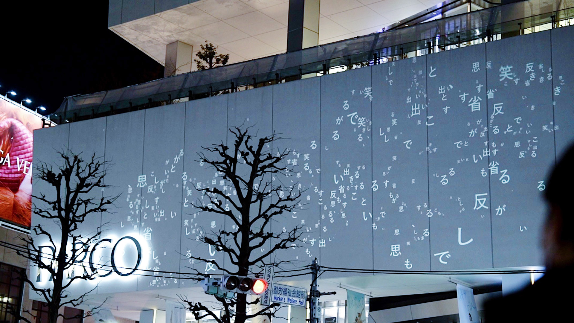 2026.02.14 17時-21時 DIG SHIBUYA 2026にて、渋谷PARCOの屋外壁面に投影されたパブリックな映像作品。
