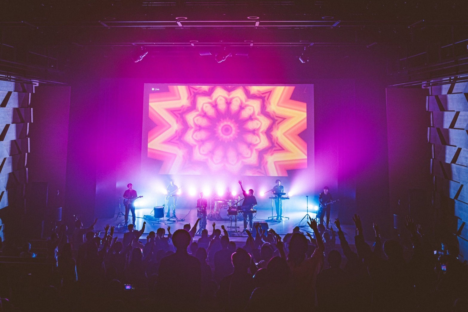 70分のライブ全編に渡って、私が「ビジュアルミュージック」と呼ぶ、音楽と同期・融合した演出映像を制作した。